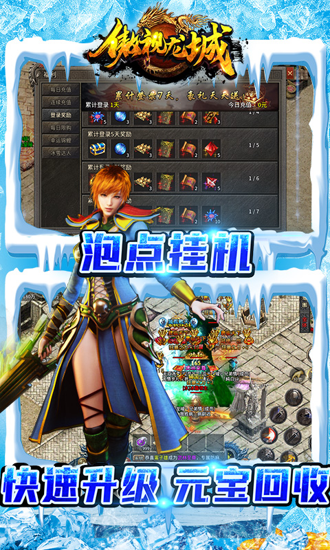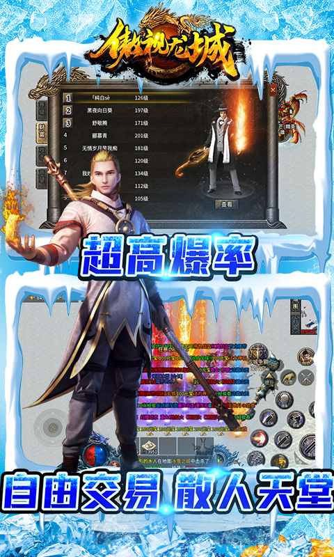 《傲视龙城》丰富多样的玩法,炫酷超燃的技能特效,更有华丽时装,怪物超高爆率,神器战装满屏爆,让您轻松刷怪,惊喜不断!更可集结志同道合的伙伴,创建公会战队,征战四方,称霸沙城,开启您精彩的传奇人生!
